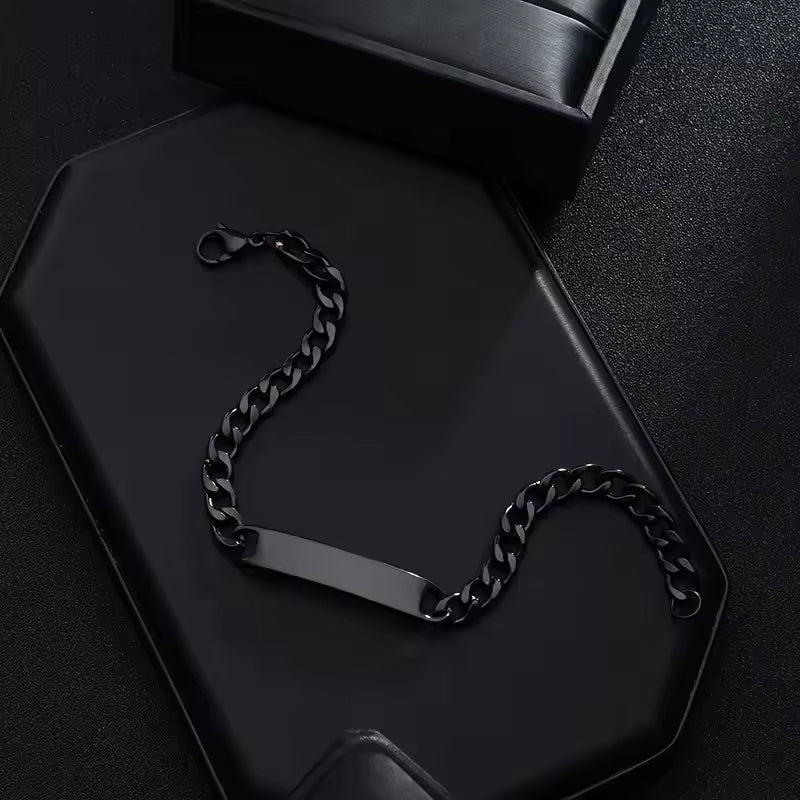 Anchoring the chain is a substantial, high-polished ID bar, ready to be transformed from a simple accessory into a personal talisman. Whether engraved with a family name, a significant anniversary, or the GPS coordinates of a memory, it is a statement of ownership and style.